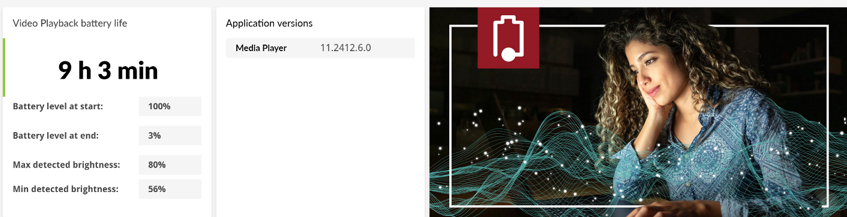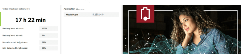 The video playback test uses the Microsoft Films & TV app included with Windows to measure battery life. The benchmark plays a HD video file in full-screen mode until the battery is depleted.