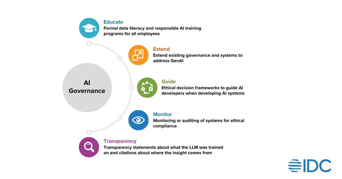 Educate: We believe understanding AI will be the responsibility of employees and 60% of large enterprises will mandate formal data literacy and responsible AI training to mitigate new risks created by the pervasive use of GenAI by the end of 2025.