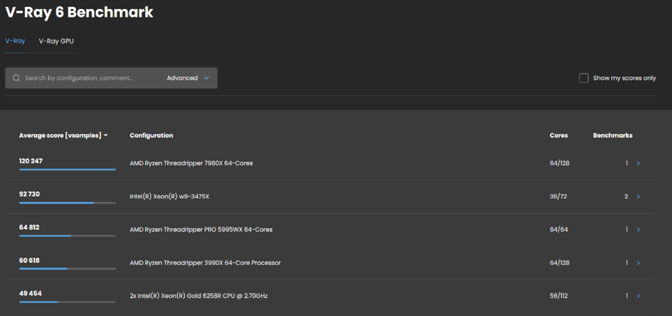 The V-Ray Benchmark, which uses the V-Ray 6 render engines, was used to gauge the system’s rendering speed.