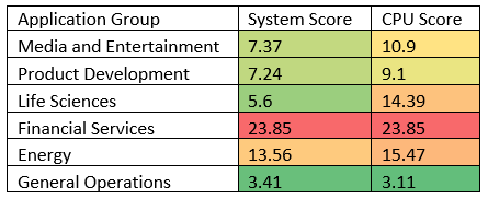 The AMD Ryzen Threadripper 7980X CPU scores are higher across all application groups, except for apps that rely more on the processor (such as financial services). This exception is due to the use of the Radeon PRO W7700, a midrange professional graphics card. Higher results across all application groups could be achieved with the use of the Radeon Pro W7800 or W7900.