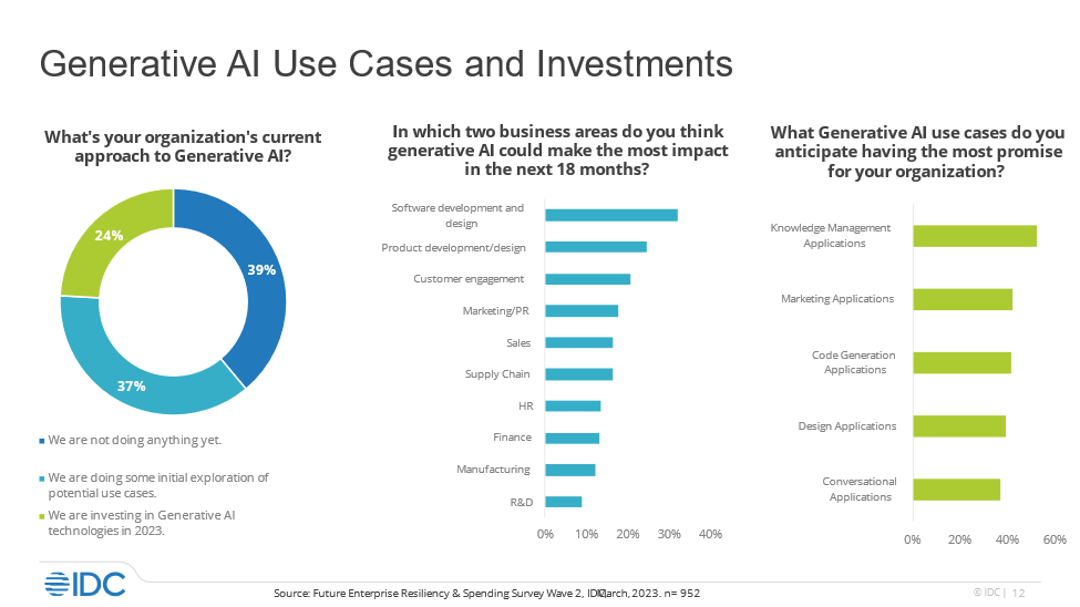 In this time of “perceived” IT malaise, the emergence of generative AI exemplified by ChatGPT and Dall-E with all their possibilities and shortcomings, has captured the attention of individuals, educators, businesses, and governments around the world. As IDC found in conversations with CIOs and IT leaders, the assessment and use of AI is starting to dominate the planning and long-term investment agendas of businesses across many industries, triggering what IDC anticipates will be a period of extending AI Everywhere.