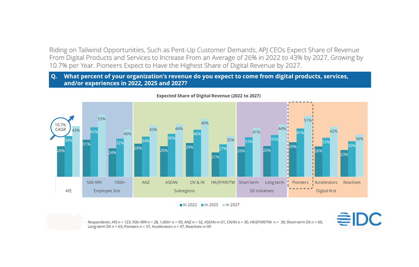 Back in 2019, the percentage of revenue attributed to digitally enhanced products, services and experiences was less than 5% of total revenue. Today, our recent IDC CEO Sentiment Survey shows that it’s over 20%, and by 2027 it’s expected to be more than 40% of total company revenue.