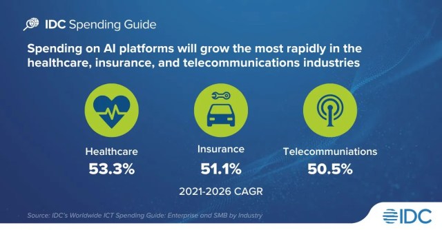 - Artificial Intelligence: AI’s tremendous potential to improve customer experience, enable new employee experiences, mitigate skills shortages, and transform the workplace is driving rapid adoption. Augmented human resources, image processing, fleet and freight management will be among the top 10 use cases related to AI. According to IDC’s Worldwide ICT Spending Guide: Enterprise and SMB by Industry, spending on AI platforms will grow an outstanding 46.6% in the DACH region during 2021–2026.