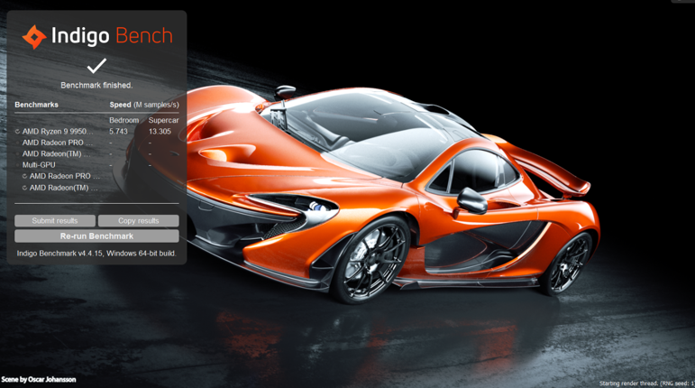 IndigoBench v4.4.15 is another standalone benchmark based on Indigo 4’s rendering engine and the industry-standard OpenCL.