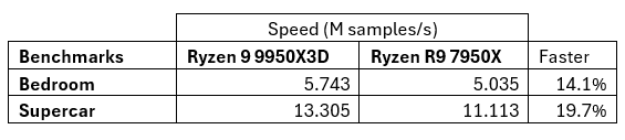 The processor outperformed the Ryzen 9 7950X again by 17%, thanks to its cooler operation and faster core speed of 5.2GHz on all cores under load.