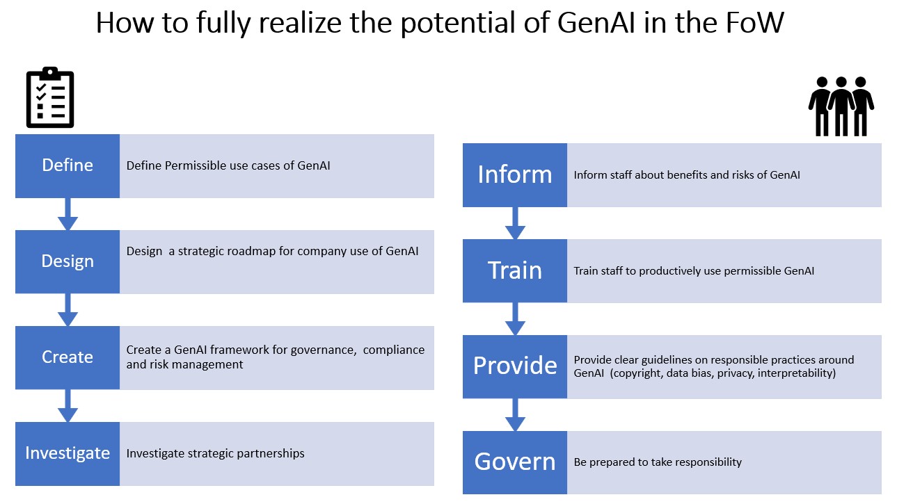 Many become users of Gen AI who understand the intricacies of newly automated tasks. They can not only capture ways to make automated work more effective but also implement insights to make better and faster decisions and choices. In summary: the implementation of Gen AI will drive work transformation at an exponential pace.