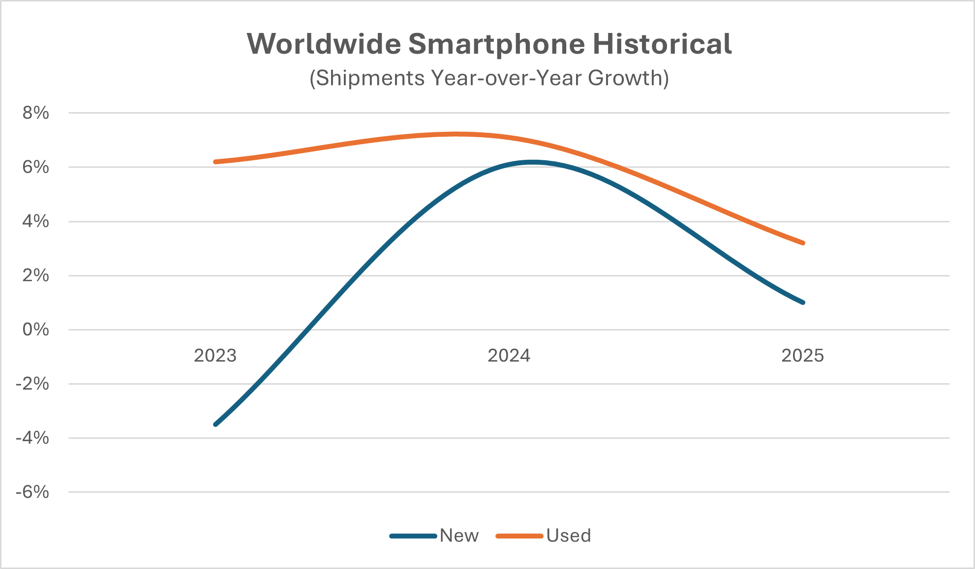 This divergence reflects changing consumer priorities: affordability, sustainability, and the growing trust in refurbished devices. As shown in the graphs below, the used device segment is not just resilient, it’s becoming a growth engine in its own right.