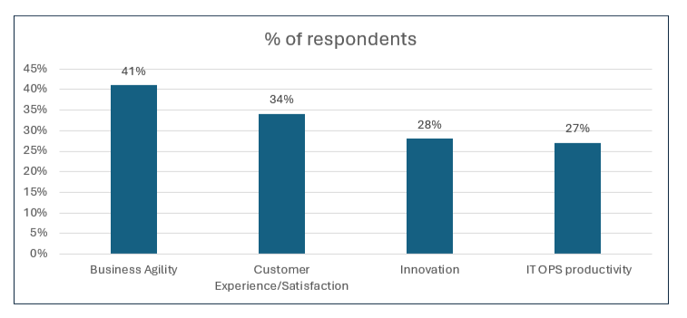 Incorporation of AI into the development processes of organizations promises to improve all 4 aspects of delivery excellence: increased speed of delivery, efficiency, quality and productivity, resulting in better business agility, meaning that the organization can respond to market changes faster and is able to provide more value, faster and better to its customers.