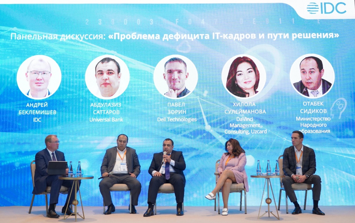 В заключительной части форума, Хилола Сулейманова, основатель DaVinci Management Consulting, директор по счастью, UZCARD, поделилась данными о тенденциях рынка труда ИТ в Узбекистане. Далее состоялась панельная дискуссия о проблеме дефицита ИТ-кадров и путях их решения, в ней приняли участие, представители бизнеса, ИТ-вендоров и министерства образования: Абдулазиз Саттаров, Universal Bank, Павел Зорин, Dell Technologies, Хилола Сулейманова, DaVinci Management Consulting, Отабек Сидиков, советник министра Народного образования по вопросам Информационной безопасности.