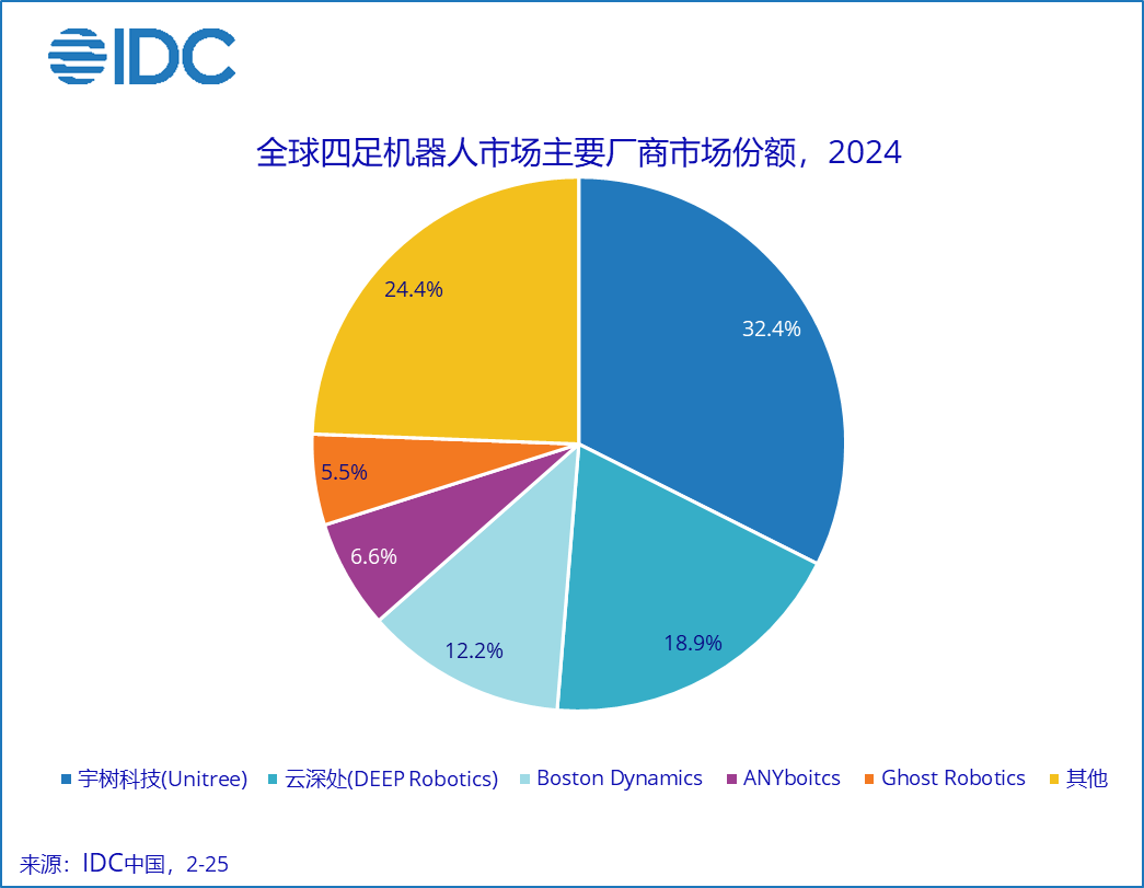 北京,2025年6月27日——近两年,中国厂商凭借完善产业链和高性价比产品逐步引领全球四足机器人市场。IDC数据显示,2024年,全球四足机器人市场规模超1.8亿美元,出货量约2万台,应用需求在电力、石油、公共安全等领域扩展。近日,国际数据公司(IDC)发布了《全球四足机器人市场份额,2024:中国厂商领跑,具身智能开启多元行业应用》(Doc #CHC53184225 ,2025年6月) ,系统回顾行业发展态势,解析技术进展、需求趋势与厂商格局。