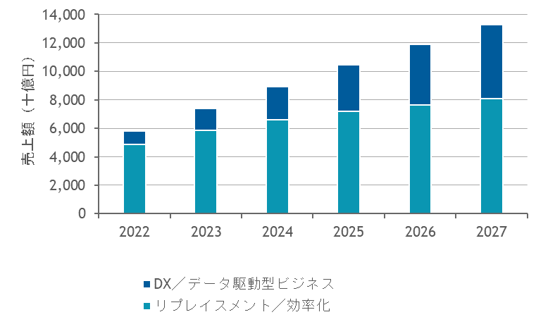 - リプレイスメント/効率化:従来型ITからクラウドへの移行や、従来型ITでは導入していないがクラウド環境やビジネスの効率化を目的とした新規投資