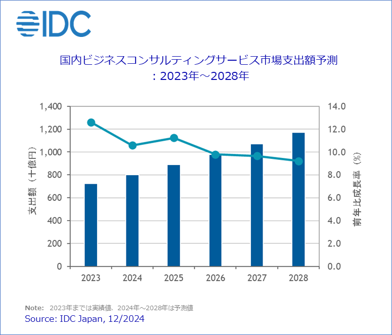 Japan, 2024年12月16日 – IT専門調査会社 IDC Japan 株式会社(所在地:東京都千代田区九段北1‐13‐5、代表取締役社長:村橋俊介、Tel代表:03-6897-3812)は、国内ビジネスコンサルティング市場予測を発表しました。これによると2024年の同市場は前年比10.6%増の2桁成長となる見込みです。