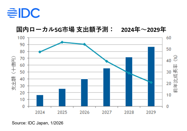 IDC Japan株式会社, 2026年1月14日 – IT専門調査会社 IDC Japan 株式会社(所在地:東京都渋谷区渋谷二丁目24番12号、代表取締役社長:村橋 俊介、Tel代表:03-6897-3812)は、国内ローカル5G市場に関する最新の調査結果を発表しました。ローカル5Gとは、企業や自治体などが、特定の敷地やエリアにおいて独自に5Gネットワークを構築・運用できる通信システムを指します。