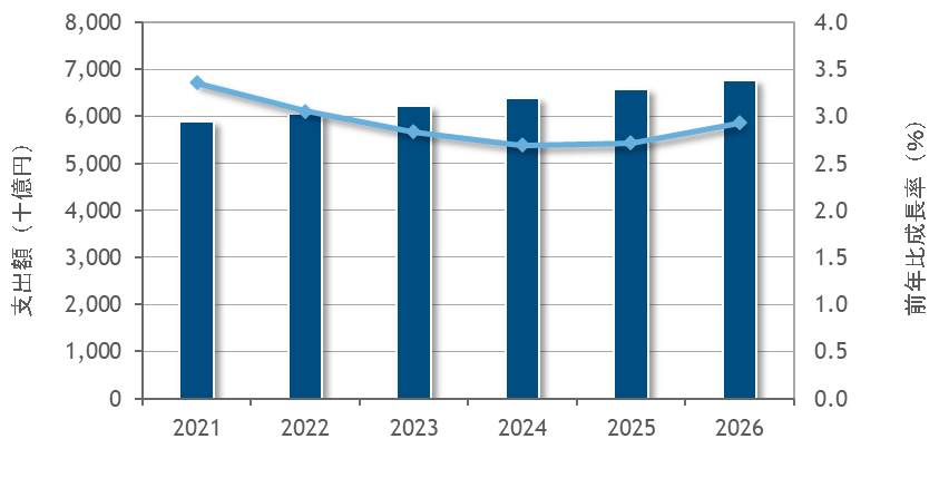 国内ITサービス市場 支出額予測: 2021年~2026年