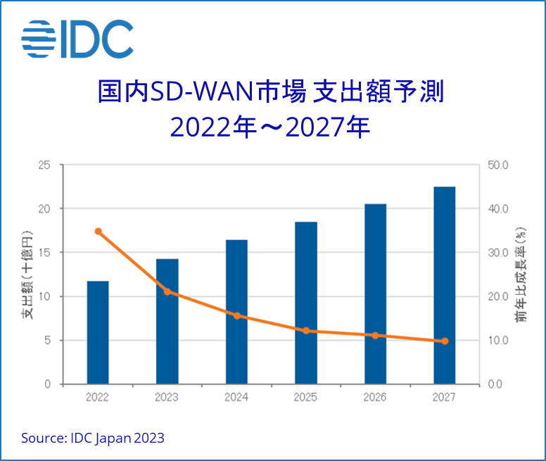 Japan, 2023年9月28日 – IT専門調査会社 IDC Japan 株式会社(所在地:東京都千代田区九段北1‐13‐5、代表取締役社長:村橋俊介、Tel代表:03-6897-3812)は、国内SD-WAN(Software-Defined Wide Area Network)市場予測を発表しました。