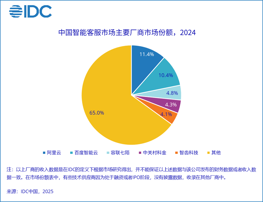 北京,2025年7月29日—— 国际数据公司(IDC)于近日发布了《中国2024年中国智能客服市场份额》(Doc# CHC52821125,2025年7月)报告。报告显示,文本/语音机器人、智能质检、坐席辅助、数字人客服、视频客服、智能分析、营销、培训、运营、决策等存在用户交互需求的场景,对大模型赋能的需求在提升。2024年至今,国内的大模型厂商开启了“价格战”使得模型推理成本显著下降,使得智能客服行业用户应用大模型的进程在提速。