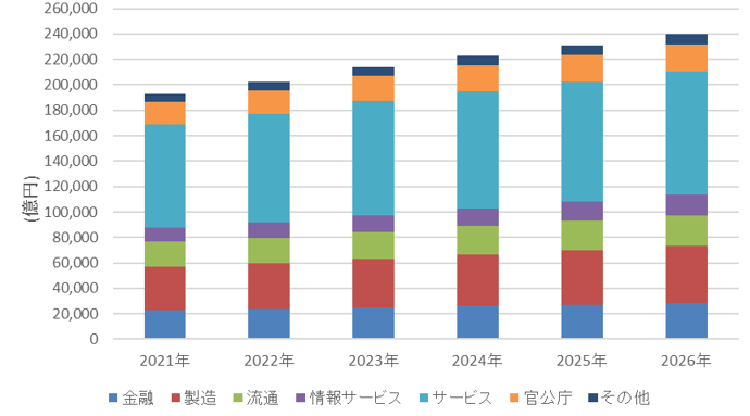 国内IT市場 産業分野別 支出額予測、2021年~2026年