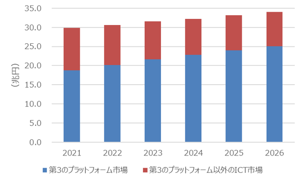 国内第3のプラットフォーム市場 支出額予測: 2021年~2026年