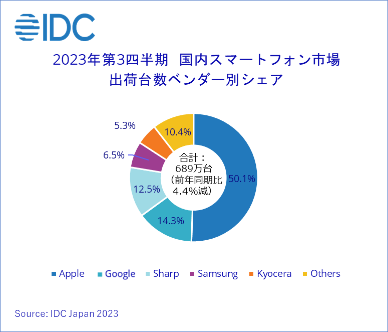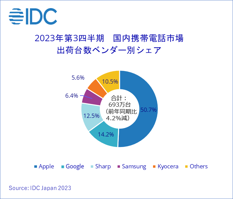Japan, 2023年12月4日 – IT専門調査会社 IDC Japan 株式会社(所在地:東京都千代田区九段北1‐13‐5、代表取締役社長:村橋俊介、Tel代表:03-6897-3812)は、国内の従来型携帯電話およびスマートフォン端末の2023年第3四半期(7~9月)の出荷台数を発表しました。