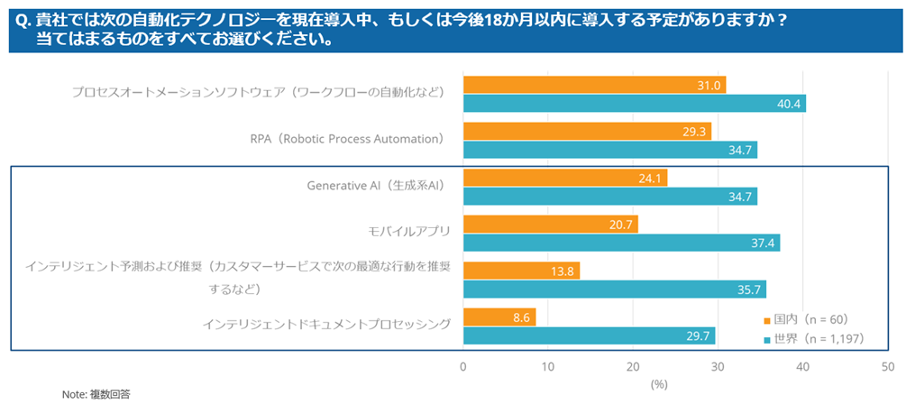 導入中もしくは18か月以内に導入予定の自動化テクノロジー