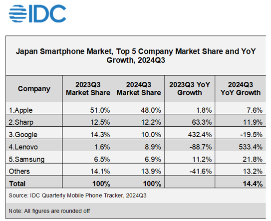 今回の発表はIDCが発行した「Worldwide Quarterly Mobile Phone Tracker 2024Q3」にその詳細が報告されています。