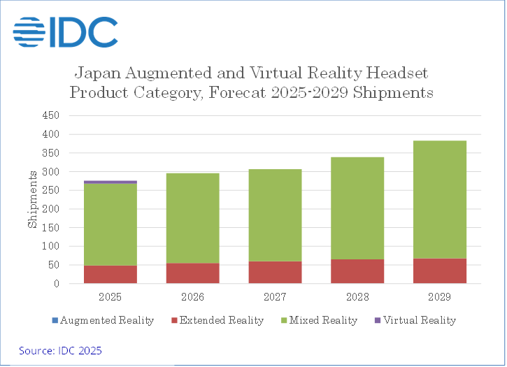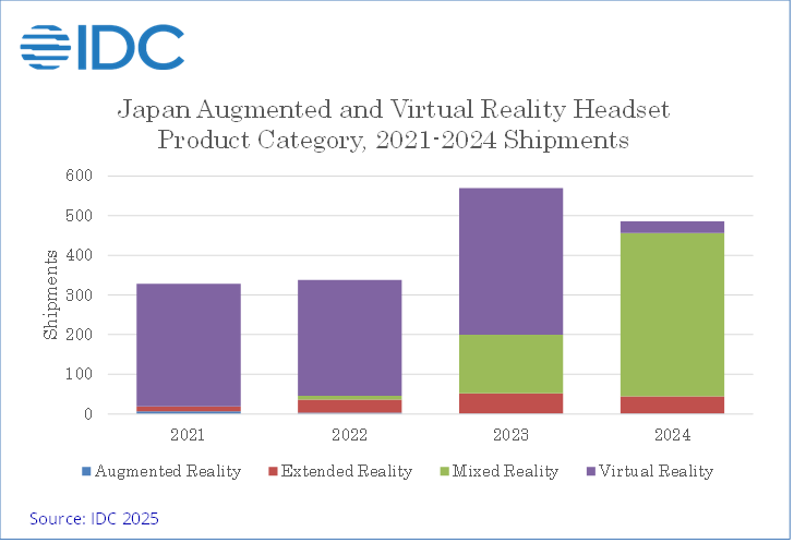 Japan, 2025年4月1日 – IT専門調査会社 IDC Japan 株式会社(所在地:東京都渋谷区渋谷二丁目24番12号、代表取締役社長:村橋俊介、Tel代表:03-6897-3812)は、2024年通年の国内AR/VRヘッドセットの出荷台数を発表しました。IDCではAR/VRヘッドセットをAugmented Reality(AR)、Virtual Reality(VR)、Mixed Reality(MR)、Extended Reality(ER)の4カテゴリで調査しています。