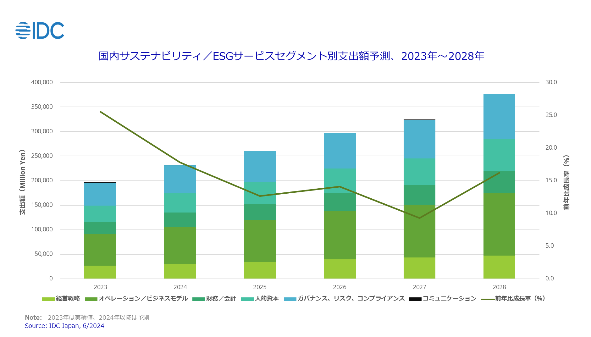 Japan, 2024年6月27日 – IT専門調査会社 IDC Japan 株式会社(所在地:東京都千代田区九段北1‐13‐5、代表取締役社長:村橋俊介、Tel代表:03-6897-3812)は、国内サステナビリティ/ESGサービス市場予測を発表しました。