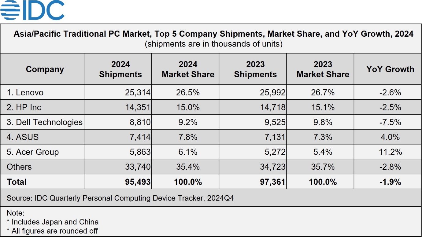 IDC forecasts PC shipments in Asia/Pacific to grow at 4.1% YoY in 2025