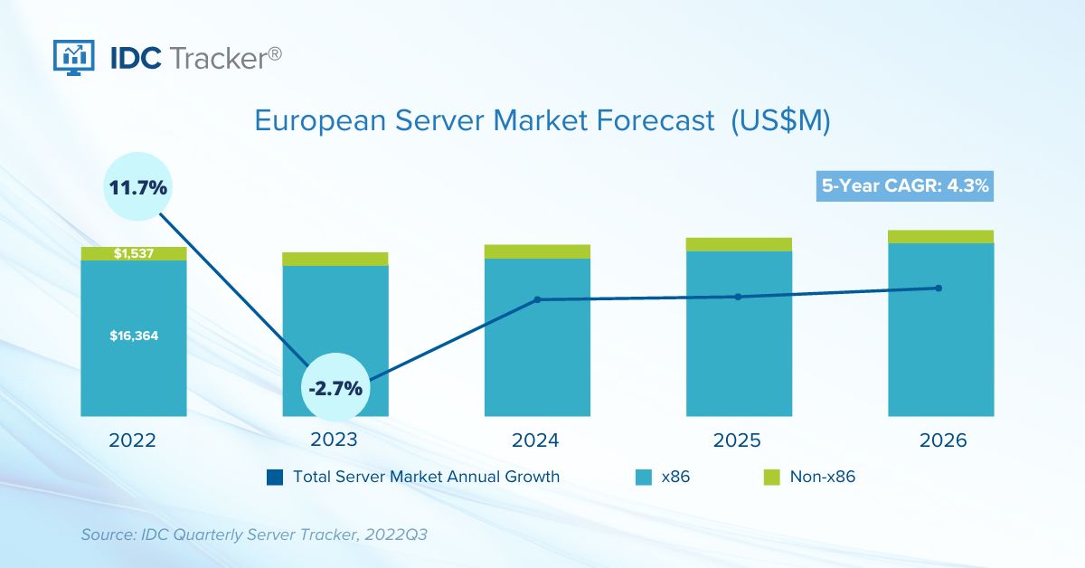 PRAGUE, January 17, 2023 – Despite concerns about the general economic and geopolitical climate, the European server market continued posting strong growth in the third quarter of 2022 according to the Worldwide Quarterly Server Tracker published by International Data Corporation (IDC).