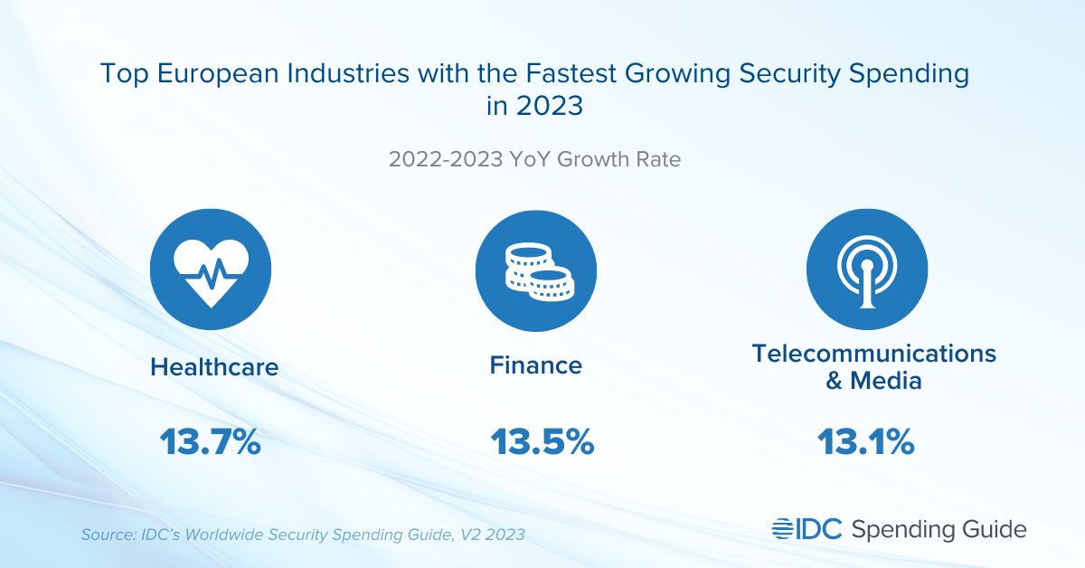 The healthcare industry will record one of the largest year-on-year growth rates of security spending in 2023, driven by the need to protect investments in technology innovation, and to address the evolving regulatory requirements, such as those included in the Cyber Resilience Act. Organizations in the finance sector will also accelerate security investments, fueled by the need for speed and agility for competitiveness, as well as the obligation to secure clients’ sensitive data . Security spending in the media & telecommunications industry will continue to grow quickly, with investments related primarily to the protection of 5G, Edge, and Internet of Things (IoT) deployments.