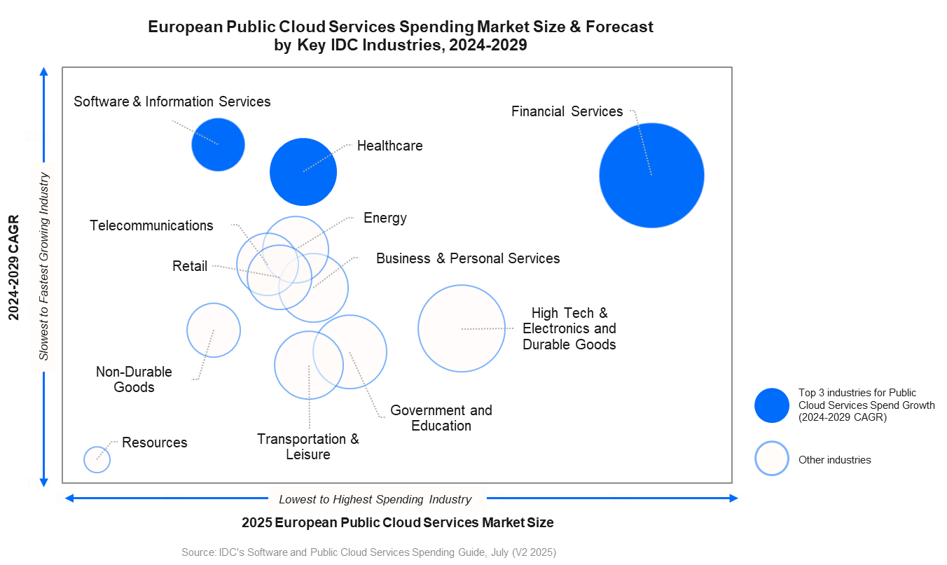 European Public Cloud Spending Holds Strong Amid U.S. Tariffs, Driven by Finance, Healthcare, and Software and Information Services