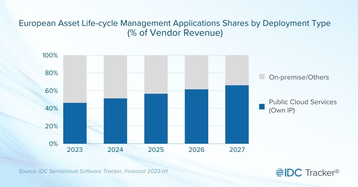 BELGRADE, December 4, 2023 – According to the Worldwide Semiannual Software Tracker published by International Data Corporation (IDC), the European asset life-cycle management (ALM) applications market will grow by 12.5% year on year in 2023, reaching a value of $1.3 billion. By 2027, the value of the ALM market will total almost $1.8 billion. The market share of cloud-deployed solutions is expected to record a compound annual growth rate (CAGR) of 17.7% between 2023 and 2027.