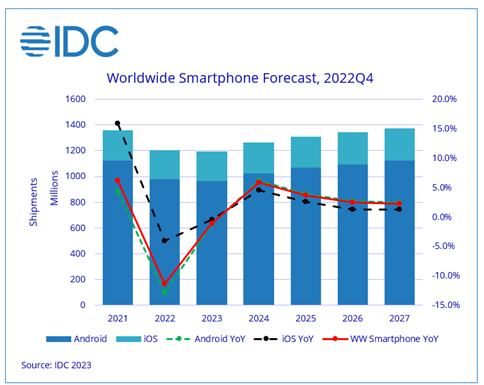 Source: IDC Quarterly Mobile Phone Tracker, February 28, 2023 |