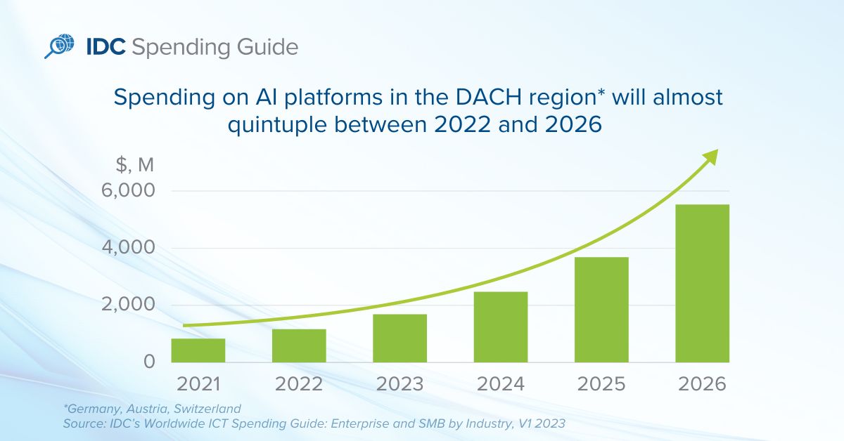 FRANKFURT, March 30, 2023 — According to International Data Corporation’s (IDC) Worldwide ICT Spending Guide: Enterprise and SMB by Industry, ICT spending in the DACH region (Germany, Austria and Switzerland) will reach $275 billion in 2023 and will surpass $330 billion by 2026. With a 6.4% compound annual growth rate (CAGR) for 2021–2026, growth in ICT spending in the region will exceed the European average (5.4%).