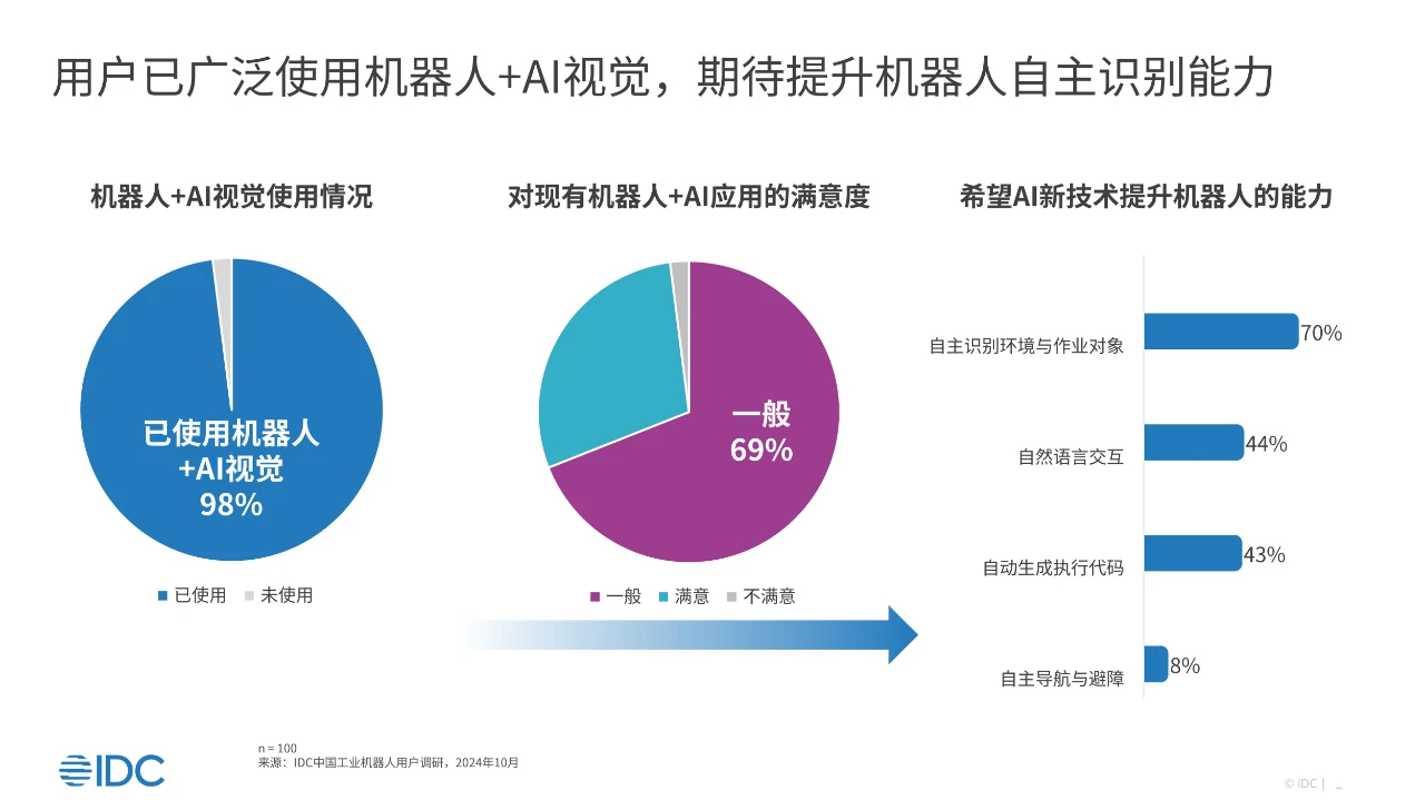 - 未来,借助AI等新技术,用户最期待提升机器人的自主识别能力。当下,以DeepSeek等AI大模型的应用被认为有望进一步增强工业机器人在复杂环境中的智能感知与自主决策能力。