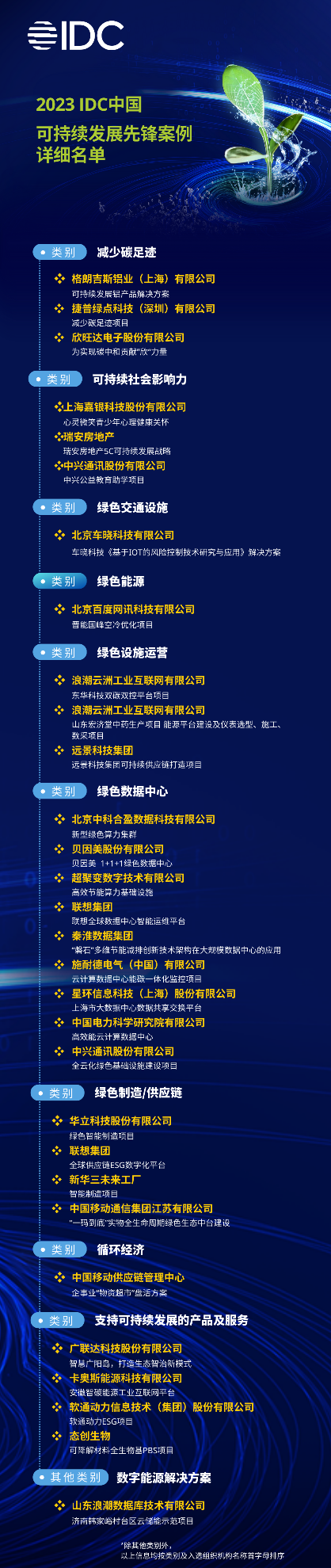 IDC中国于2023年6月开启【IDC中国可持续发展先锋案例】征集工作,最终共计30个项目入围,结果已于10月对外公布。本次峰会上,进行了【2023年IDC中国可持续发展先锋案例】的荣耀授予仪式。
