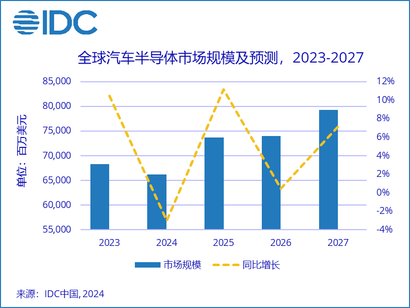 此外,随着全球汽车销量放缓,我们对2024-2027年汽车芯片市场的预测进行了调整,到2027年,汽车半导体整体规模将超过792亿美金。整体的预测数据如下图所示: