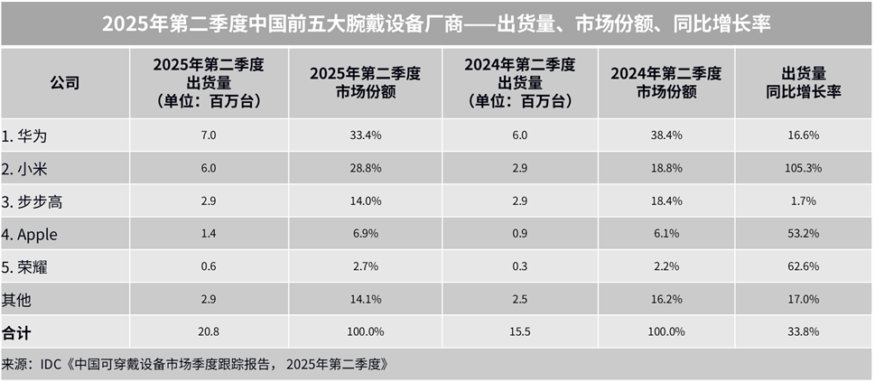 2025年第二季度中国腕戴市场表现: