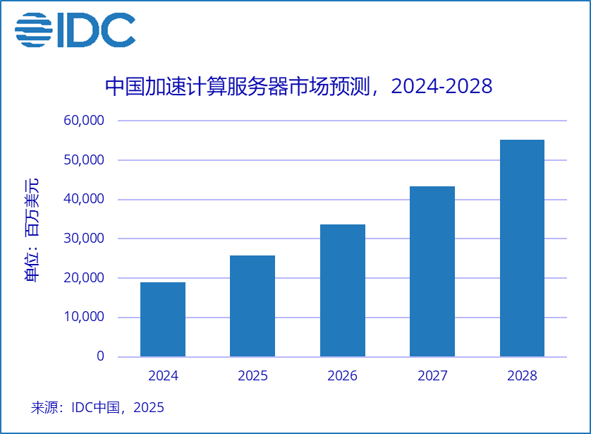 北京,2025年1月3日——国际数据公司(IDC)发布了最新的加速计算服务器市场预测数据。IDC预测,2024年中国加速服务器市场规模将达到190亿美元,同比2023年增长87%。其中GPU服务器依然是主导地位,占据74%的市场份额。到2028年,中国加速计算服务器市场规模将超过550亿美元,其中ASIC加速服务器市场占比将接近40%。