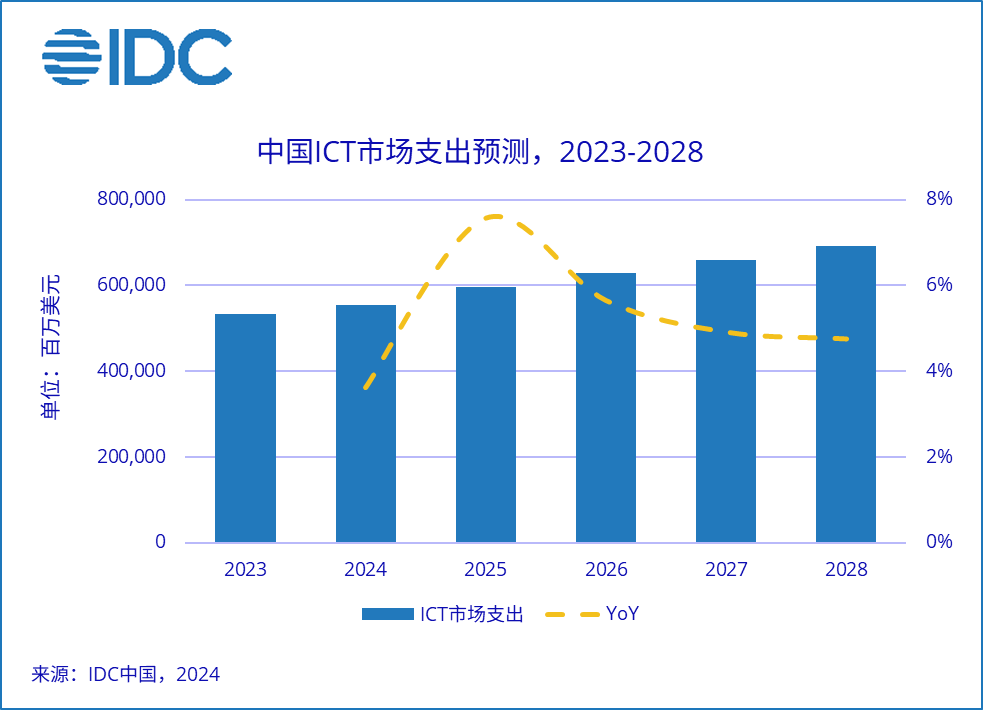 IDC: 2028年中国ICT市场规模超6,915亿美元,五年复合增长率5.1%