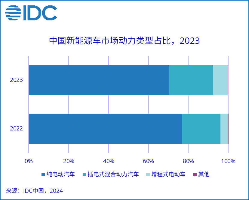 北京,2024年09月14日——国际数据公司(IDC)最新发布的China Annual Electronic Vehicle Tracker数据显示,增程式电动汽车与插电混合式动力汽车在新能源车中的占比取得显著增长。随着新能源车市场由早期的快速增长进入平稳增长阶段,消费人群的构成逐渐转向态度更为审慎的主流购车者,如精明自主型和稳重体面型用户。作为电动化进程中的阶段性动力模式,增程式与插混模式保留汽油机作为补充性动力来源,打消了消费者对于长途、补能的顾虑,使对纯电动模式有所犹豫的消费者得以通过相对保守的方式接触新能源车,进而开始培养以充电为常规补能模式的用车习惯。