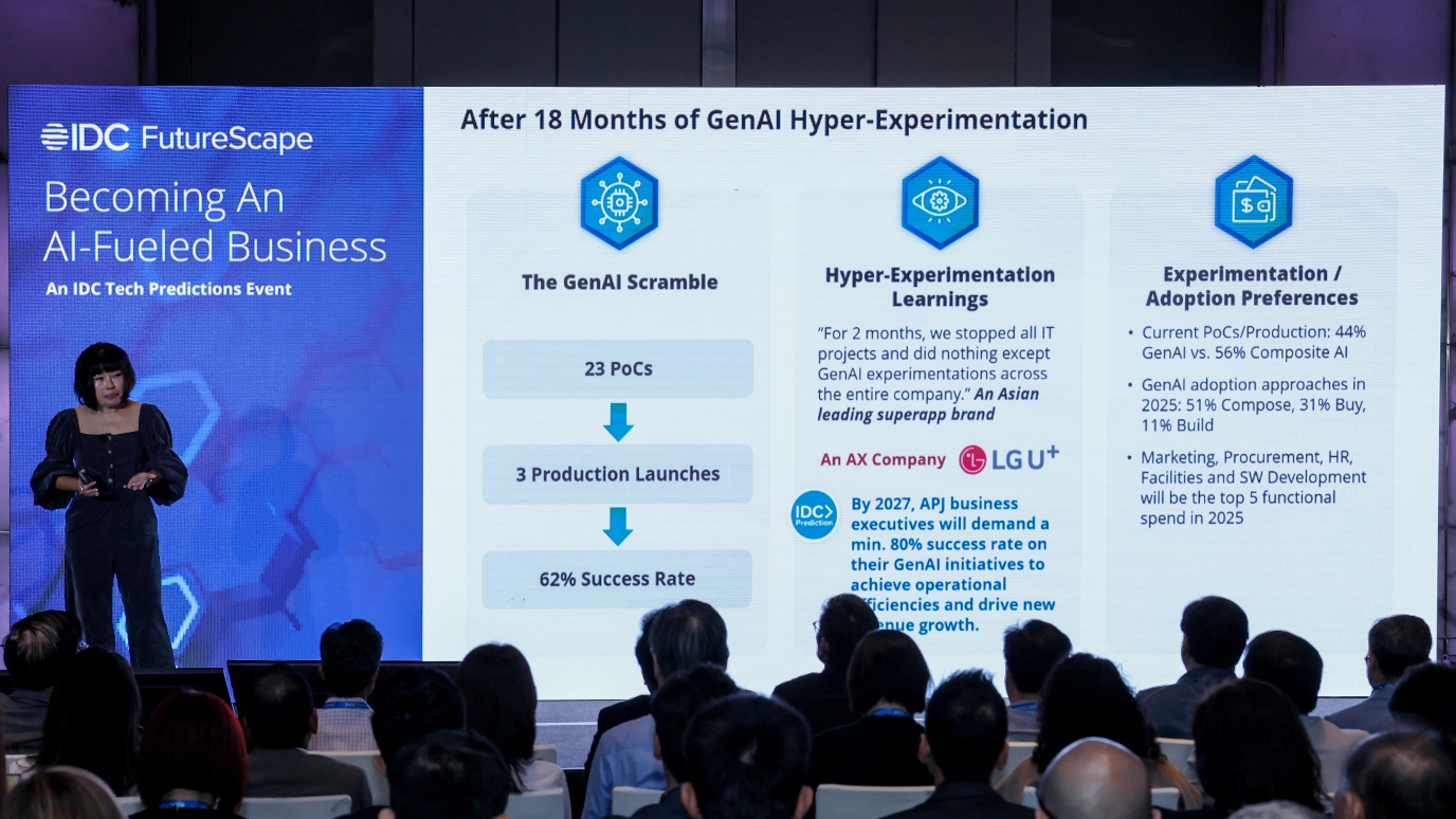 SINGAPORE, 08 November 2024 – At the recent IDC FutureScape event in Singapore, IDC unveiled its latest technology predictions for 2025-2029, revealing that Asia/Pacific* business leaders will demand 80% success rate on GenAI initiatives by 2027. This ambitious target aims to boost efficiency and revenue growth.