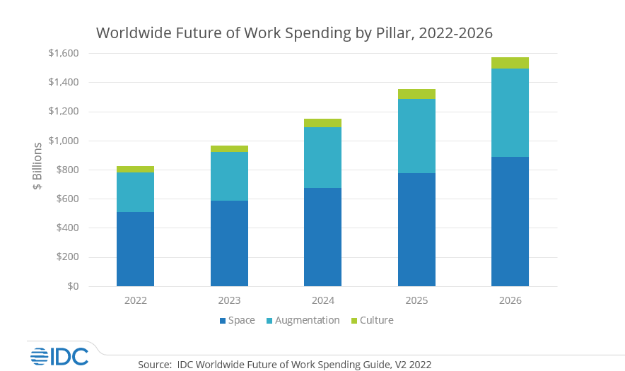 NEEDHAM, Mass., January 30, 2023 – Hybrid work, once thought to be a temporary means of enabling enterprises to continue business operations through the COVID-19 pandemic, has become a mainstay for the global work landscape. To enable these hybrid work models, organizations are investing in a wide range of technologies and services to increase workforce productivity and enable new, more agile ways of working. A new forecast from the International Data Corporation (IDC) Worldwide: Future of Work – Spending Guide shows that organizations will spend nearly $1 trillion on the Future of Work (FoW) in 2023, an increase of 18.8% over 2022.