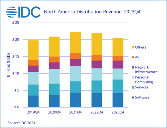 IT Distribution Revenues Remained Under Pressure In Q4 2023, According to the IDC North America Monthly Distribution Tracker, Powered by GTDC