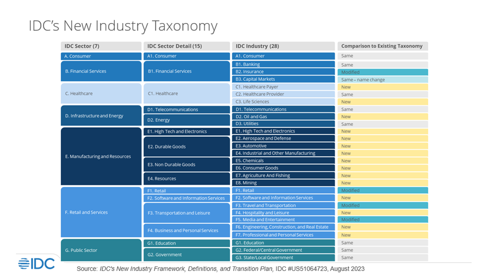 “The introduction of the new IDC Industry taxonomy marks a significant leap forward in our ability to support our clients’ industry segmentation needs. With more modern categorization and granular, value chain-based segmentation, IDC data users are better equipped to identify, analyze, validate, and action questions and insights specific to the industries they serve,” said Eileen Smith, program vice president, Data & Analytics at IDC. “Analysts and strategists can track trends across more industries, validating assumptions while understanding nuances of buyer behavior and whether these change in adjacent segments. Executives and their teams can better inform strategic decisions and justify tactical actions, such as acquisitions, partner selection, resource allocation, and territory and campaign planning at granular industry levels.”