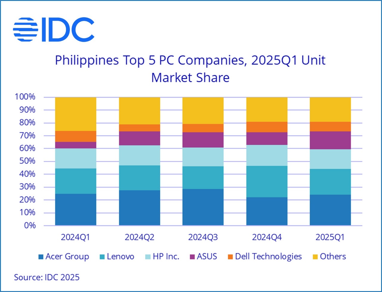 Philippines PC Market, Top 5 Company Shipments, Market Share, and YoY Growth, 2025Q1 |