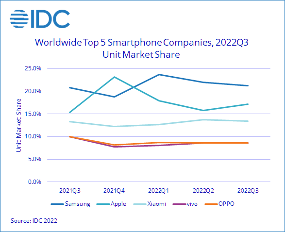 Source: IDC Worldwide Quarterly Mobile Phone Tracker, October 27, 2022 |