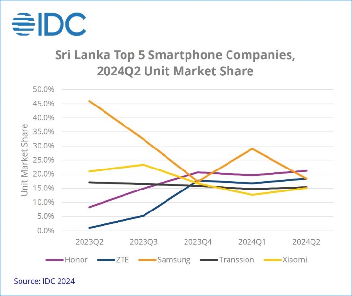 Smartphone ASPs (average selling price) continued to increase, growing by 19.2% YoY and reaching US$152 in 2Q24. The low-end segment (US$100 5G smartphones accounted for 15% of the smartphone share for the three countries, growing 354% YoY: o The new government in Bangladesh continued with the existing 5G agenda. The top telcos have been rolling out 5G networks using unified 5G licenses under BTRC and reducing 5G data costs, although their priority remains to bring 4G to all. 5G smartphone shipment reached 8% of the total, growing 430% YoY in 2Q24. o The new Nepalese government has authorized NTA to initiate an auction of 5G spectrum, post Huawei’s 5G testing report. 5G smartphone shipment grew by 212% YoY, accounting for 34% of the total share. o For Sri Lanka, with a 100% acquisition of Airtel and 74% acquisition of Sri Lankan Telecom, Dialog Axiata has become the largest telco in Sri Lanka and expanding its 5G coverage as well as offering affordable 5G plans. 5G smartphone shipment accounted for 25% of the total smartphones in 2Q24. The market continued to be dominated by retail channels with a 98% share as consumers prefer to see the device before purchase, which is made easier by easy accessibility in multi-brand outlets and large chain store expansion by national distributors, particularly in Sri Lanka. Transsion led the region with a 24% market share, followed by Xiaomi at 22% and realme at 14%: o Transsion led the Bangladesh market for the eighth successive quarter, with Spark Go 2024 and A05s being the most popular, despite a 10% YoY decline. realme tied with Xiaomi for the second spot, with realme’s Note 50 and C65, and Xiaomi’s Redmi 13 and Redmi A3 as their top-selling models. o Xiaomi continued to lead the Nepal market for the sixth quarter in a row, growing 122% YoY, with the Redmi 13C series being the highest-shipped model in the market. Samsung had the most number of models, with its Galaxy A15 leading the pack. Transsion grew 71% YoY, with Spark Go 2024 being top in demand. o Honor led the market with a 21% market share in Sri Lanka, owing to X7b as the highest-shipped model in the market. ZTE tied with Samsung for the second position. ZTE’s Blade A34, along with V60 and Neo 2 were its top-selling models while Samsung’s Galaxy A05 led its overall stock. Note: *This chart/table shows data by IDC’s Brand field. Company ranking may differ where Companies own more than one Brand. (*Figures in tables/charts rounded to the first decimal point). *South Asia excluding India -Ends- For more information about IDC’s tracker products and research services, please contact Shivani Anand, Senior Marketing Specialist at sanand@idc.com. You can also follow IDC India’s Twitter and LinkedIn pages for regular updates. About IDC Trackers IDC Tracker products provide accurate and timely market size, vendor share, and forecasts for hundreds of technology markets from more than 100 countries around the globe. Using proprietary tools and research processes, IDC’s Trackers are updated on a semiannual, quarterly, and monthly basis. Tracker results are delivered to clients in user-friendly Excel deliverables and on-line query tools. About IDC International Data Corporation (IDC) is the premier global provider of market intelligence, advisory services, and events for the information technology, telecommunications, and consumer technology markets. With more than 1,100 analysts worldwide, IDC offers global, regional, and local expertise on technology, IT benchmarking and sourcing, and industry opportunities and trends in over 110 countries. IDC’s analysis and insight helps IT professionals, business executives, and the investment community to make fact-based technology decisions and to achieve their key business objectives. Founded in 1964, IDC is a wholly owned subsidiary of International Data Group (IDG), the world’s leading tech media, data, and marketing services company. To learn more about IDC, please visit www.idc.com. Follow IDC on Twitter at @IDC and LinkedIn. Subscribe to the IDC Blog for industry news and insights. All product and company names may be trademarks or registered trademarks of their respective holders.Key Categories