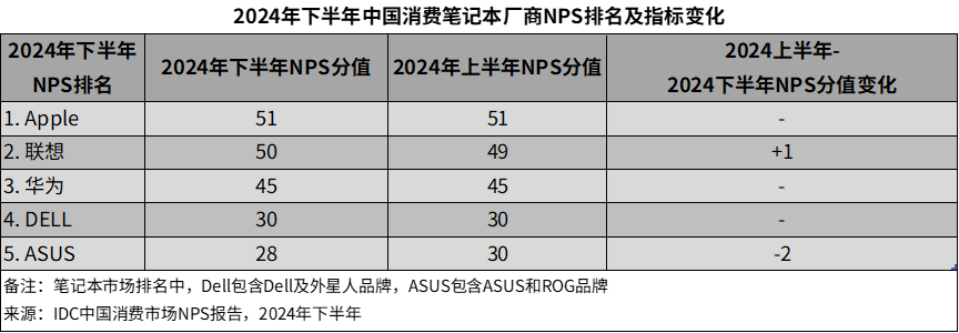 DELL在2024年下半年NPS表现持平,消费者仍在期待更有影响力的笔记本新品,尤其是AI PC相关新品的推出。