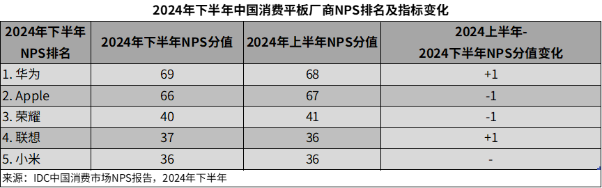 IDC持续开展针对智能终端市场的品牌NPS(净推荐值)研究,通过调研数据与IDC行业数据的结合,呈现智能终端市场各主流品牌在品牌印象、产品体验、购买体验等方面的口碑变化。同时通过对NPS各驱动因素的研究,也能够精准洞察市场需求动向和行业发展趋势。本次发布的中国2024年下半年智能终端消费市场排名共涵盖笔记本、台式电脑、平板电脑和手机四个产品品类。